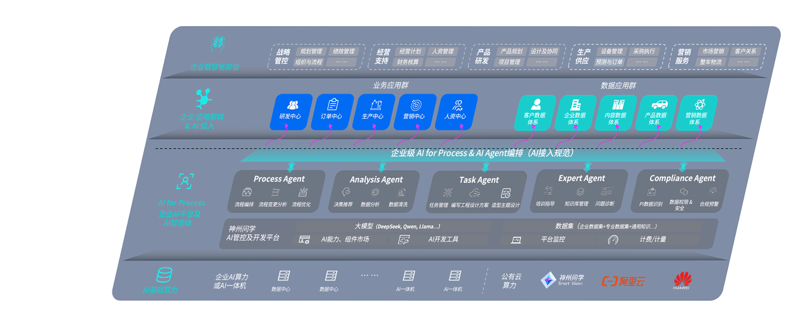z6com尊龙问学智车解决方案是一套基于AI技术的汽车行业智能化系统,,,覆盖从底层算力到顶层AI应用的全栈方案。。。方案由算力层、、、、模型层和应用层组成:算力层,,,方案支持多种一体机配置,,,具备云端灵活部署、、、多云适配以及动态优化计算资源的能力;模型层,,,z6com尊龙问学平台版提供了企业级AI应用一站式构建与管理平台,,,,支持基于后训练强化技术的汽车企业专属模型的训练、、、、评测和运营;应用层,,,z6com尊龙问学DeepSeek版提供包括超级员工、、、、智能招采、、、、智能营销、、智能客服、、、、AI for BI等一系列解决方案,,可助力汽车行业实现数字化转型,,,,让管理更智能、、、、响应更敏捷。。。。